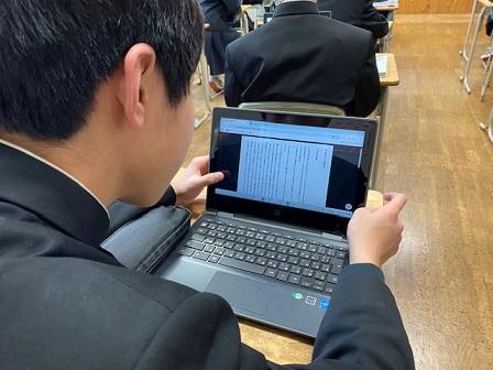 本校では、2学期より「語彙力」「表現力」「発想力」等を高める活動の一つとして、文豪の名作や現代の小説、新聞のコラムなどを読んで、思ったことを友達と話し合うという活動を行っています。本日の題材は、朝ドラ「らんまん」の主人公である牧野富太郎さんが93歳の時に書いたエッセー「若き日の思い出」です。5分ほどで読むことができる内容でしたが、1年生の学級では「何ていう漢字?」「文章が難しい・・・」などと声が聞こえてきましたが、今学期は文章を読む習慣を付けることに重きを置いています。朝はバタバタしますが、このような時間を大切にしたい!と思っています。