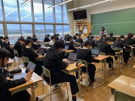 また、携帯安全教室では、他人に関係する動画を勝手にアップした生徒、その動画に対して誹謗中傷のコメントをした生徒の事案があり、この2人のどこがまずかったのか?自分達がスマホを使う際にどんなことに気を付けなければならないのか?などを考えました。冬休みは、インターネットを使用する時間が増えると思いますが、便利である反面、危険も隣り合わせであることをしっかり考え、過ごしてほしいと思います。
