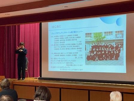 助け隊のメンバーは、今年度の活動内容を報告した後、スライドを用いて学童保育で子ども達と折り紙をしている様子やあいおい祭りやかほく市災害ボランティアセンターでのお手伝いの様子などを発表しました。メンバーは、かほく市を笑顔であふれる街にしたい!ボランティアの輪が広がる街にしたい!と話していました。
