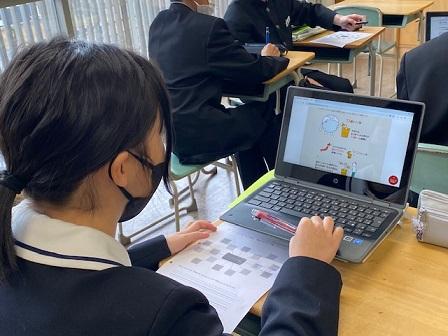 また、1年生は来年度入学する新入生に向けて「ピアサポート(児童・生徒同士の間で相談をし合い、励ましたりする取組)」の回答を作成しました。今回の取組内容は①部活動について②友達関係について③中学校の勉強についての3つです。「大丈夫、私も6年生の時は不安でいっぱいでした。」「中学校は、いろんなことを教えてくれる先輩がいますよ」など、優しさ、励ましたっぷりの回答を考えていました。