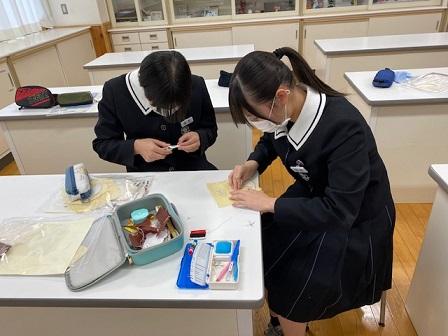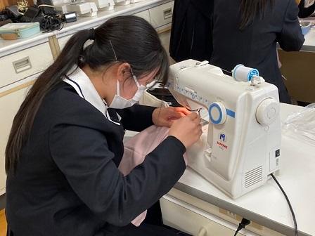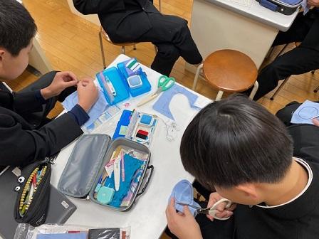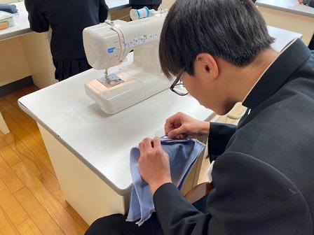 2年生の家庭の授業では、「袋づくり」を行っています。布と布を合わせて縫っていく作業は、どの生徒もスムーズに行っていましたが、紐通し口や脇がほずれないよう何度かミシンをかける部分に苦労していました。完成した袋を早く見たいですね。