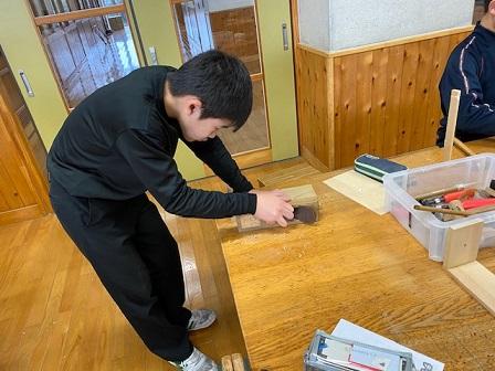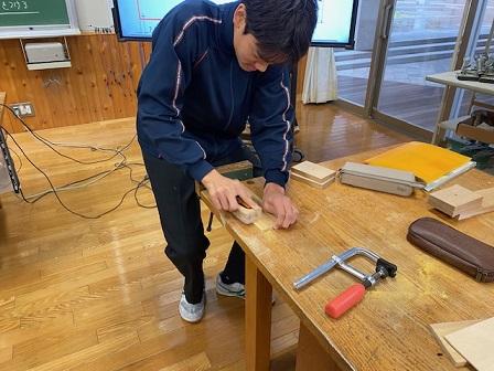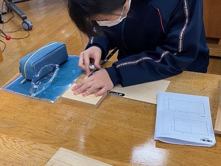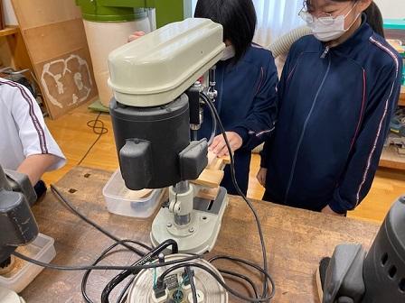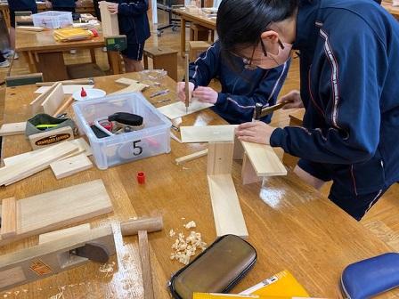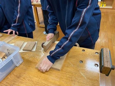 1年生の技術の授業では、「スツール(背もたれのない椅子)」の下に入る「小物入れ」の作製を行っていました。ネジを通す穴を開ける作業、板の厚みの調整や板の表面を平滑にするためにかんながけの作業などを行っていました。かんながけは、難しそうでした。今学期に完成する予定ですが、大丈夫かな…。