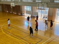 女子バスケットボール部は、初心者が多く、西田部活動指導員からドリブル、パス、シュートなどバスケットボールの基礎的な技術を教えて頂きました。
