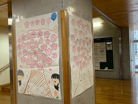 3年生とのお別れの日が近づいてきました。玄関の柱には、下級生からのメッセージが掲示されています。この取組は、学年三役会が中心となって進めてくれました。