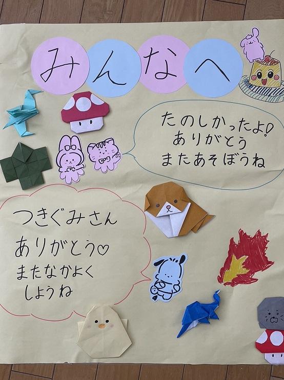 先月、3年生の家庭科の授業の一環として、新化こども園にお邪魔をしたお礼に園児達から可愛い贈り物が届きました。「なかよくしてくれてありがとう」「またあそぼうね」などのメッセージや一緒に遊んだ絵など、園児達は一生懸命作ってくれました。