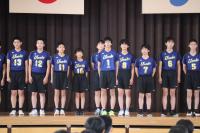 各部の選手がユニフォームを着て、吹奏楽部の演奏で颯爽と登場しました。顧問の先生から選手紹介があり、各部長からは大会に向けた抱負が述べられました。