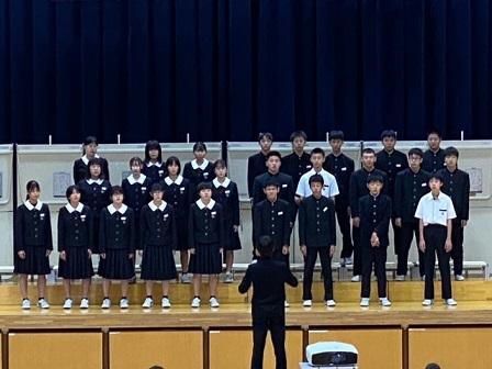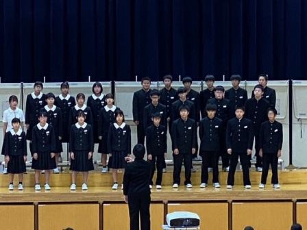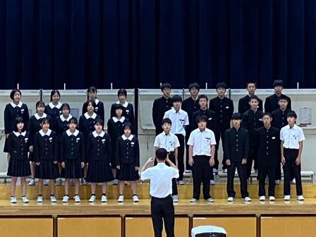 1年生、どの学級も声が出ており音程がとれてきましたね。そしてどの学級もまとまりができてきました。言葉をはっきりとそして強弱などを工夫することができればよいなと感じました。本番が楽しみです。
