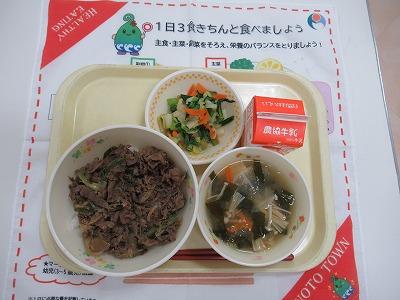 11月29日はいい肉の日です。給食では、1日早く能登牛の牛丼を作りました。