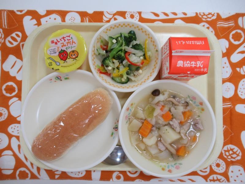 組み合わせは具だくさんのトマト風味のスープといちごゼリーにしました。ほとんど残食はありませんでした