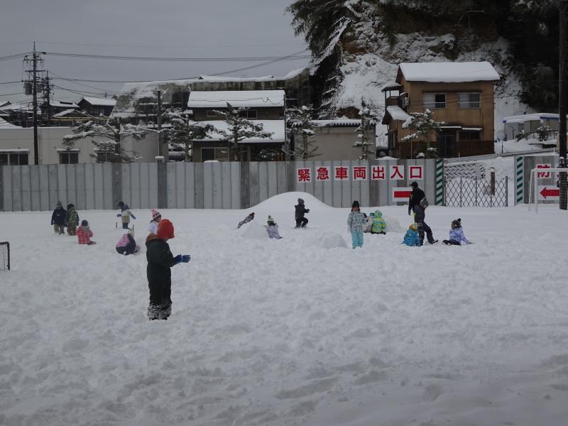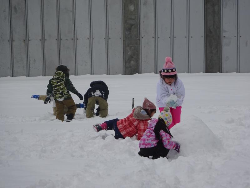 雪にダイビングしたり寝転んだり、昼休みの様子です。