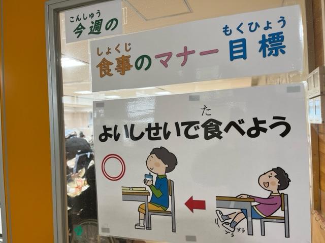 ランチルーム前には今週の目標が貼られています。