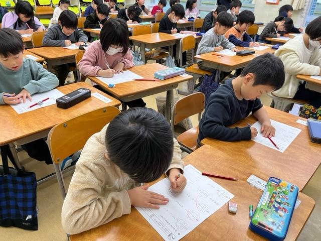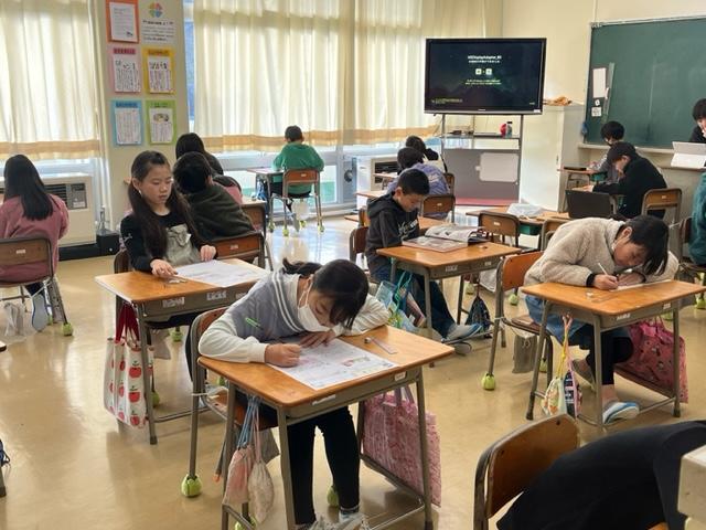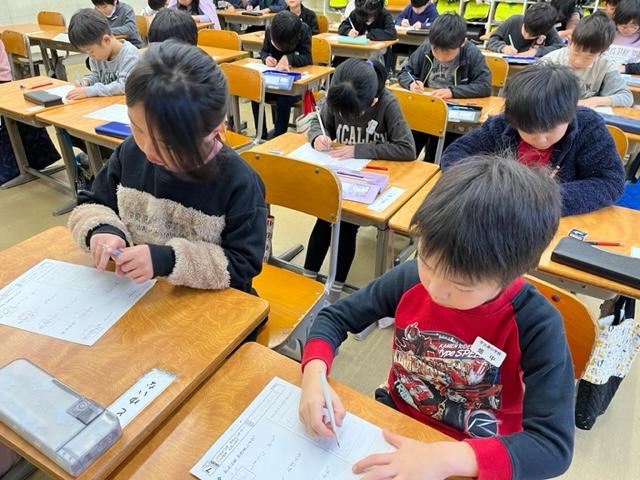 同じ学年の宇出津小学校の1年生。行儀よく、しっかりとテストに取り組んでいました。