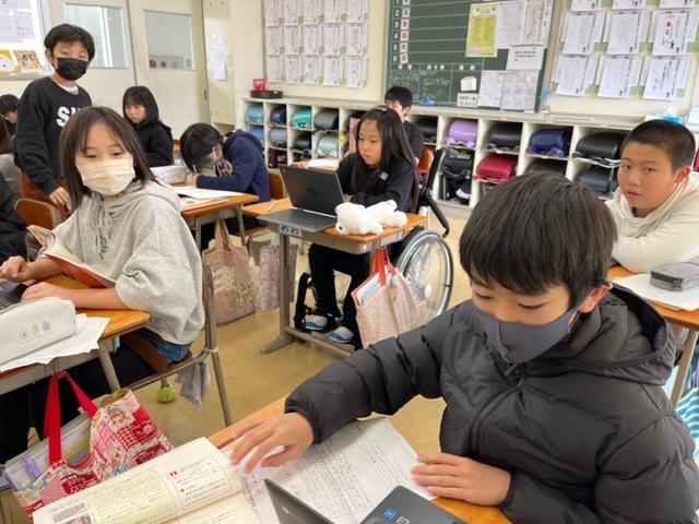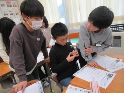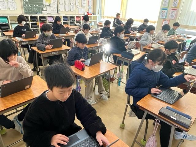 能登町の5つの小学校で取り組まれた実践について各校の6年生が紹介し合い、感想を交流しました。