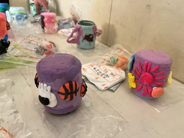 紙粘土に色をつけて、それぞれの作品を完成させていました。