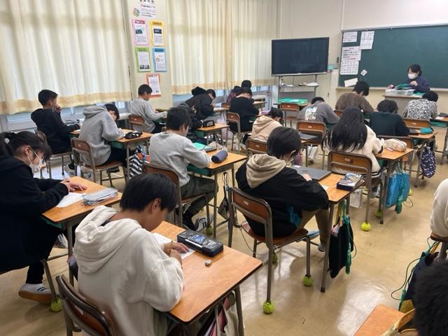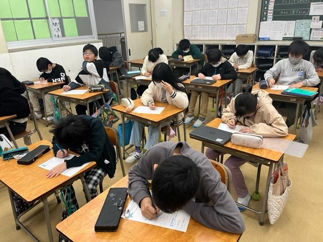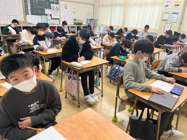 よ~くみると、算数のテストをしていました。答えを確認している児童や提出を終えて静かに読書を始めている児童もいます。