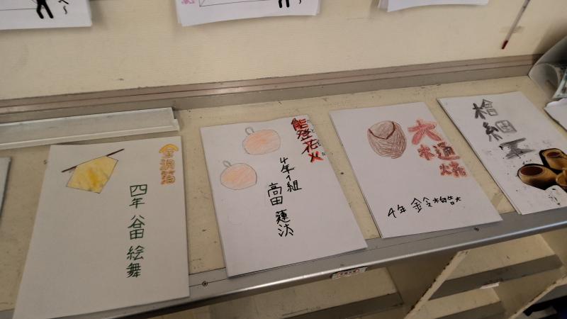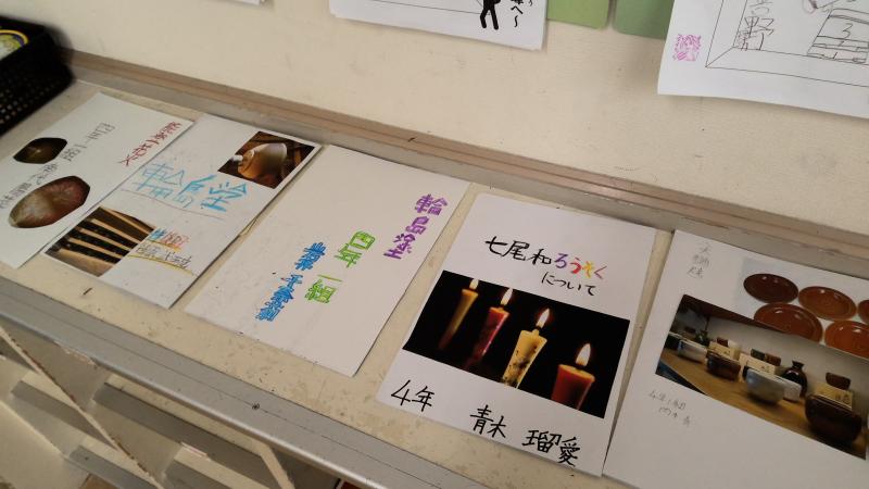 教室の後ろの掲示物。どんな足跡が残っているかな。