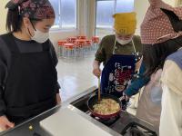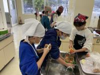 6年生は家庭科の授業で調理実習を行いました。