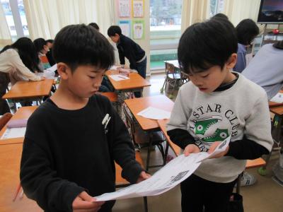 絵画作品展や書写コンクールなど、たくさんの表彰がありました。宇出津っ子の頑張りが伝わってきました。1年生の学年発表では、季節とともに学んできたことを振り返る発表でした。「これから冬がはじまります。冬にはどんな発見があるか、楽しみです。」という1年生の言葉は、春を迎えるための大切な準備期間だということも伝わってきました。