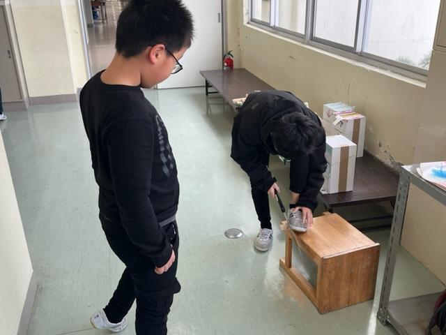 来年の4年生用として、机・椅子などの大きさや数の調整を行っています。