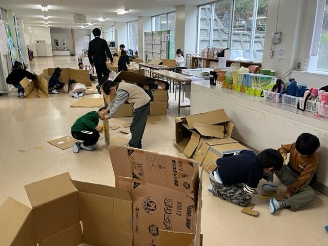 宇出津小学校に、大きな段ボールで包装されたものが届きました。