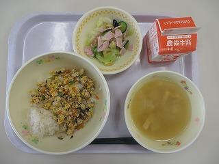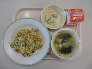 カラフル!イカチャーハン 中華スープ 大根サラダ 牛乳