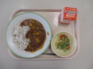 ひき肉カレー 大根サラダ 牛乳