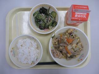 炊き込みご飯 肉うどん ごまマヨネーズあえ 牛乳