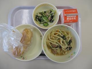 ウインナーサンド 親子うどん 野菜ソテー 牛乳