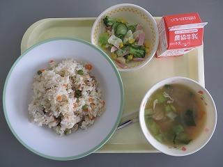 ピラフ 野菜スープ スパゲティサラダ 牛乳