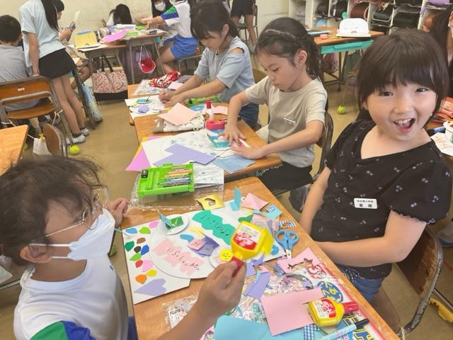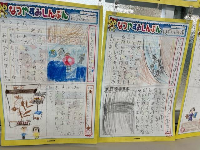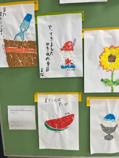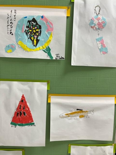 夏を感じさせる作品が児童玄関に掲示してあります。