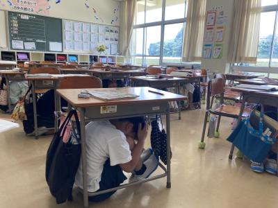 登校してきた児童の中には、「海に入ってきました。」と言っている児童が何人もいました。