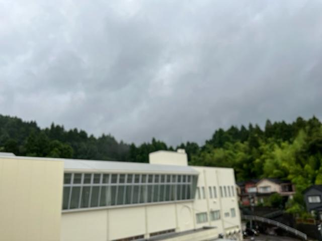 今朝早くは晴れ。でも、児童が登校する時間になると雨がぽつぽつと・・。やがて、宇出津小学校の上空が鉛色の雲で覆われ、雨脚が強くなり、大きな雷の音もなり始めました・・