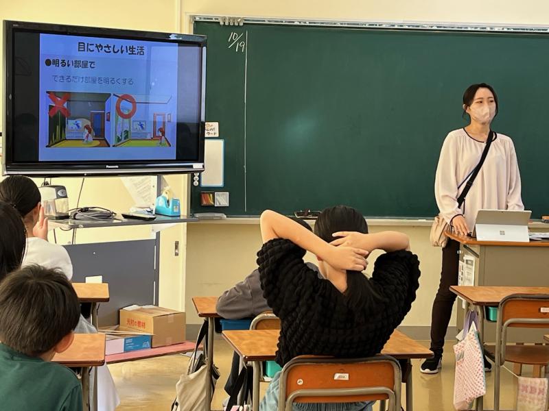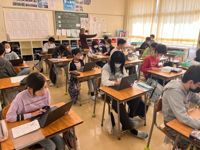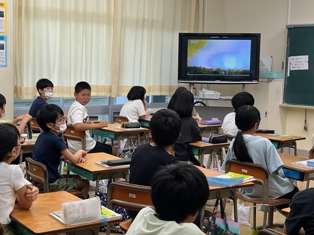 5年生はちょうど天気の学習をしていました。画面を見ながら、空が暗くなるようすや雨が降るようすについて学習していました。