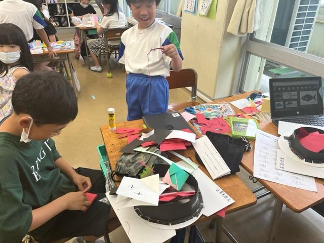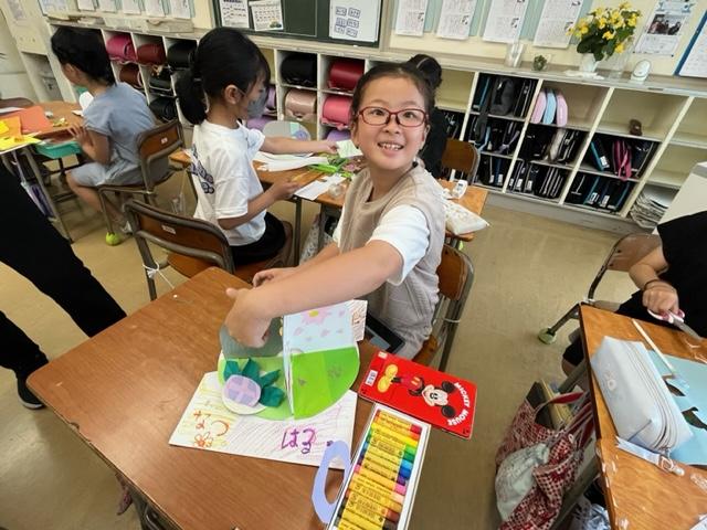 完成した作品を見せてくれる児童もいました。