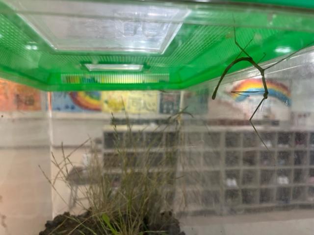 虫が好きになった3年生。虫かごの中には、ナナフシが入っていました。