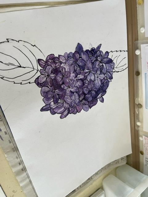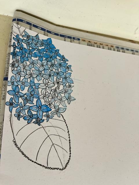 5年生教室の後ろには、とてもきめ細かなアジサイの絵がありました。