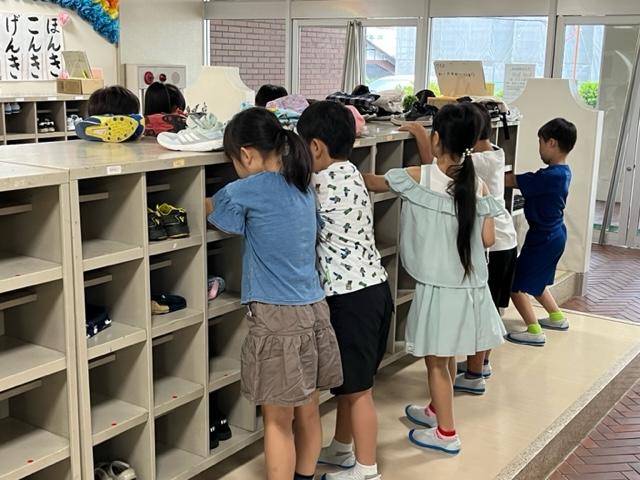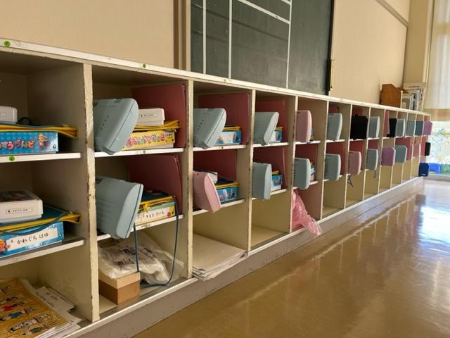 児童玄関の3年生の下駄箱の上。