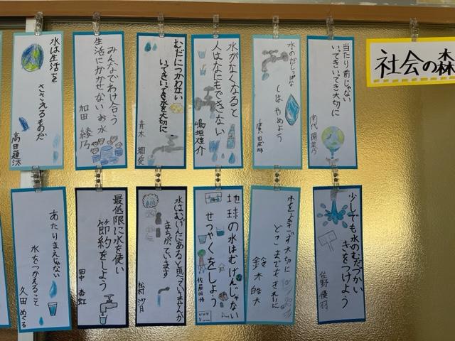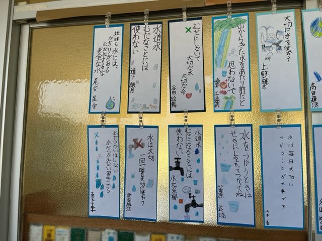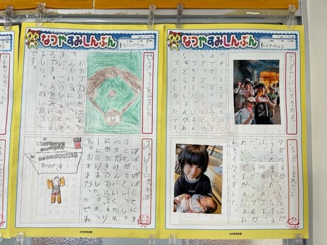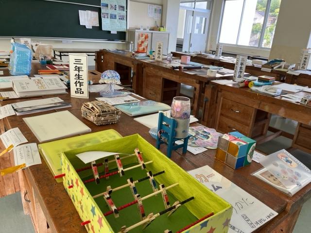 写真は4年生の掲示物。思い出の作品も掲示されていました。