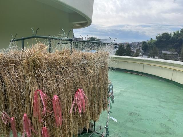 また、グランドでは校務員さんが草刈りを・・ベランダではもう一人の方がツバメの巣の下の汚れなどを落としてくれていました。