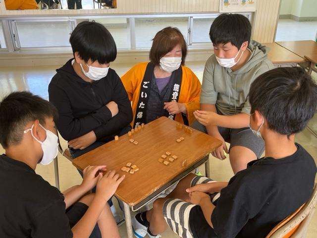 交流遊びの内容については、国語の授業の話し合い単元で、目的や条件に合った遊びになるように、縦割りの各団で話し合って決めました。