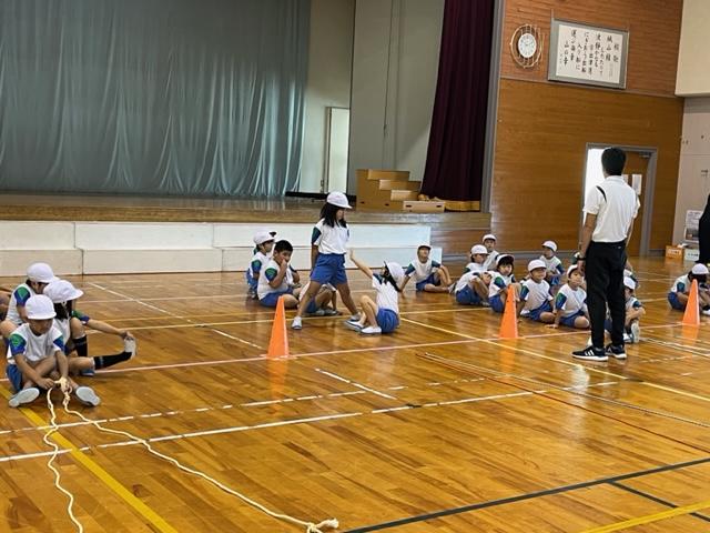 とても楽し気にやってました。途中、待っているときの姿勢について先生からの注意を受けていました。自分たちの姿勢で直すところに気づき、そのあとは声を掛け合い、きちんとしていました。バッチリ!