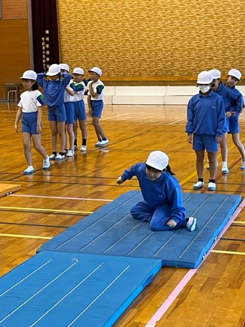 3年生の体育では、跳び箱の練習をしていました。