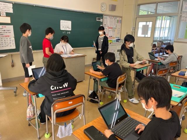 キーワードとなる言葉を探し、文章の並び替え。そして、さらにわかりやすいように長い文を短い文にわける学習をしていました。
