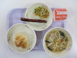 ウインナーサンド 親子うどん 野菜ソテー 牛乳