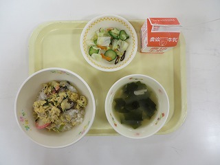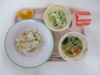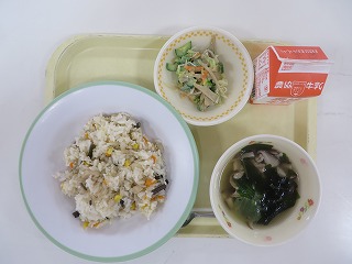 中華風ピラフ 五目スープ 中華サラダ 牛乳