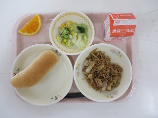 ミルクロール 滝側 コーンサラダ オレンジ 牛乳