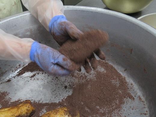 ~ピュアココア、グラニュー糖、粉糖を混ぜておき、揚げたパンに1個ずつまぶします~