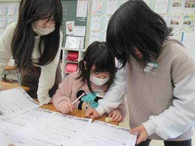 1年生は2年生を楽しませようと頑張っていました。ゲームの種類や遊び方の説明など、上手に伝えていました。