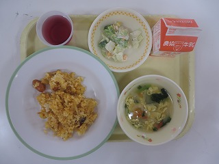 特別な牛丼を、子どもたちは感謝しておいしくいただきました。