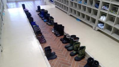長靴やブーツを下足箱に入れて、内履きに履き替えて、元気に教室へ。